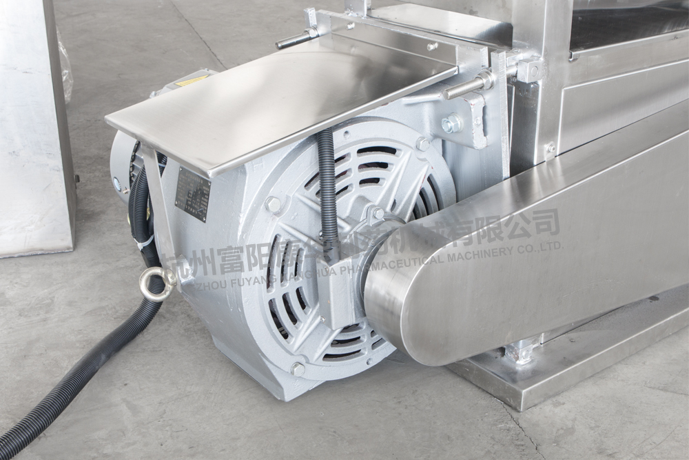 采用不銹鋼鏈條連續(xù)輸送物料,操作簡單,生產(chǎn)效率高;該機具有運轉(zhuǎn)平穩(wěn)、噪音低、維修方便等特點,符合GMP要求。
